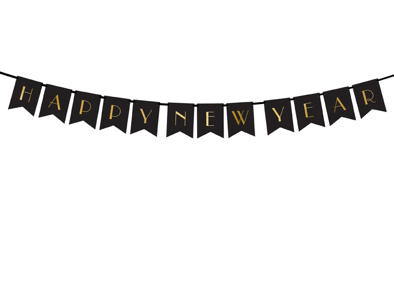 Ha olyan dekorációt keresel, ami nem csak ünnepi, de klasszikus is, ez a fekete “Happy New Year” banner (15×170 cm) tökéletes választás. A mély fekete alapszín nemcsak elegáns, de remek kontrasztot ad a térnek, különösen arany, ezüst vagy világos dekorációval kombinálva.